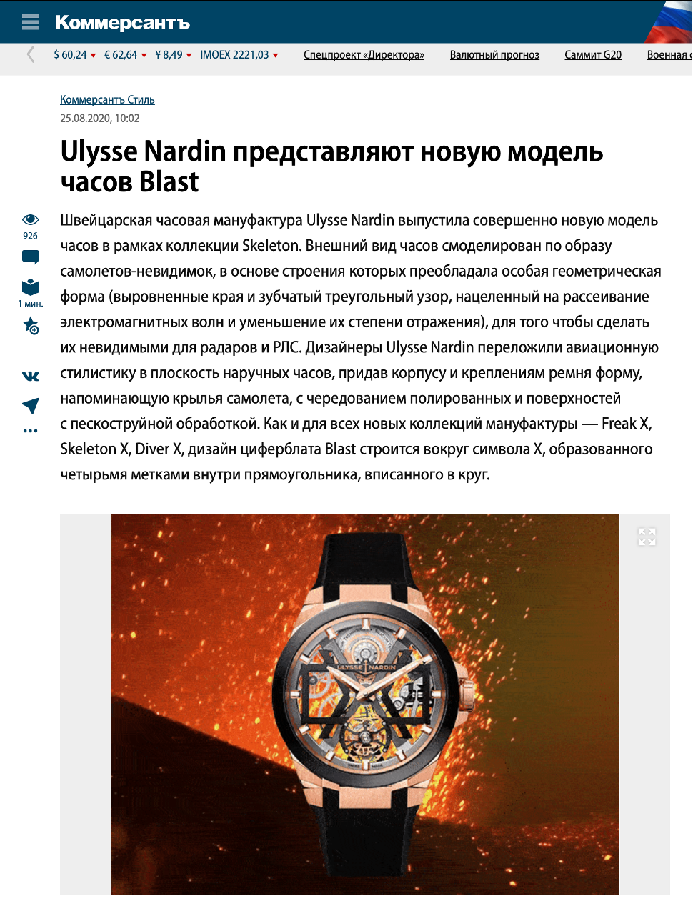 Благодаря адаптации материалов из HQ, а также подготовке локальных инфоповодов, агентству удалось добиться лидирующего положения среди брендов премиальных часов по кол-ву публикаций в ТОП 100 СМИ, согласно данных стороннего сервиса Медиалогия (Q2.2021).