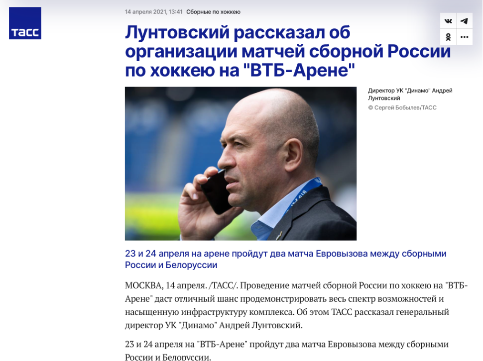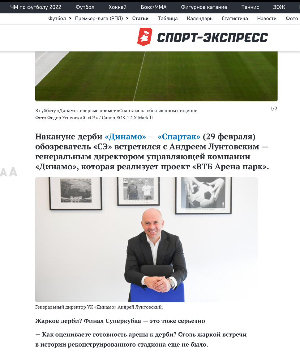 - анонс знаковых событий, происходящих на территории ВТБ Арена парк;